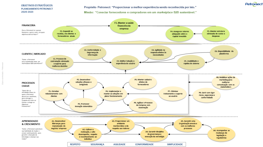 Para ficar mais claro, segue um exemplo de Mapa estratégico da empresa Petronect.