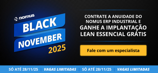 Enquanto muitas empresas ainda tentam entender o que muda, a Nomus está oferecendo uma oportunidade única para quem quer se preparar com tranquilidade: durante a Black November 2025, as indústrias que contratarem a anuidade do Nomus ERP Industrial ganham a implantação Lean gratuita, uma economia de até R$ 4.800.