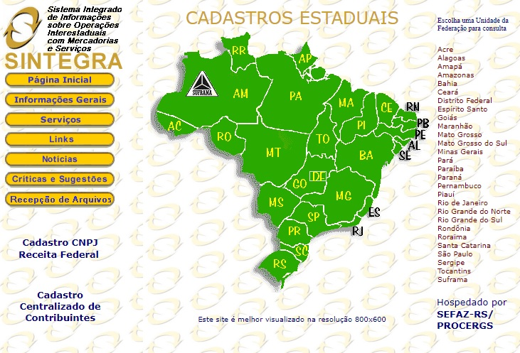 Acessar o site do SINTEGRA em http://www.sintegra.gov.br/