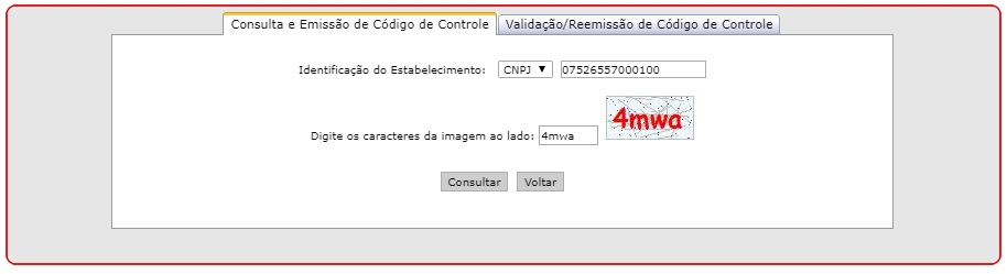 Após clicar na “UF” informar o CNPJ da empresa na tela de consulta, digitar os caracteres e clicar em Pesquisar. Na imagem abaixo apresentamos a consulta do CNPJ “07.526.557/0001-00” (Sem pontos e barras: 07526557000100)