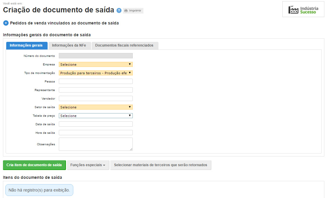Produção para terceiros é quando a sua indústria presta serviços de processamento de materiais para seus clientes. Isso é, em vez de vender produtos prontos/sob encomenda, você faz o serviço de processamento, com a matéria-prima principal e outros insumos podendo ser fornecidos total ou parcialmente pelos clientes.