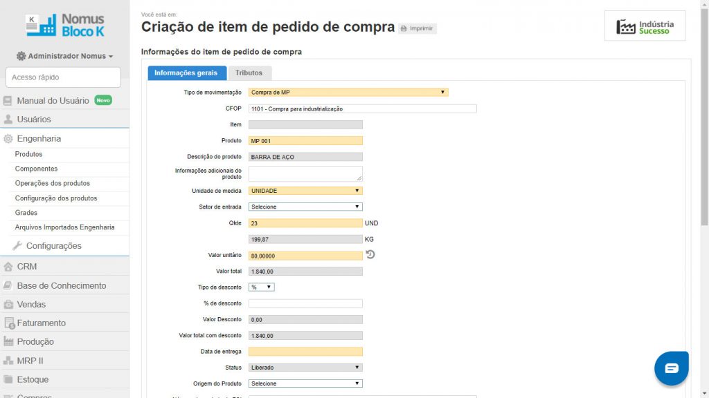 Para isso, recomendo assistir uma demonstração do software Nomus ERP Industrial.