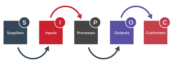 A lógica do processo é similar ao SIPOC, como observado na imagem:
