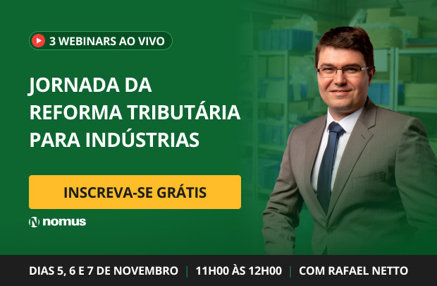 Para ajudar gestores e profissionais do setor a entender o que muda na prática, a Nomus realizará a Jornada da Reforma Tributária para Indústrias, uma série de três webinars gratuitos e exclusivos com Rafael Netto, CEO e fundador da empresa.