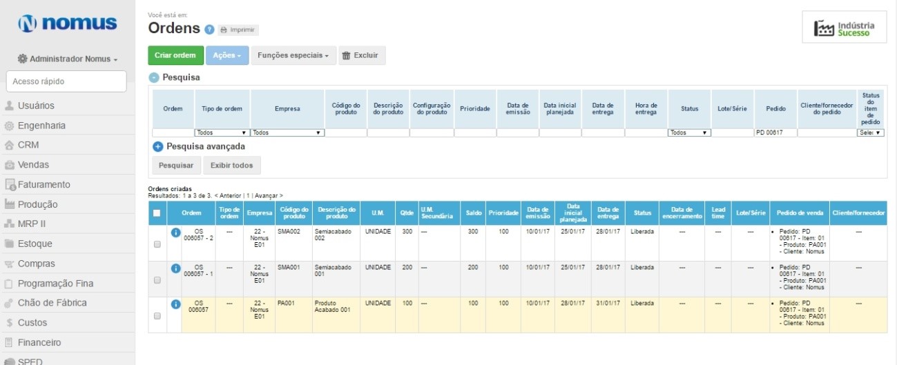 Localize seus pedidos na produção de forma rápida e prática, assista uma demonstração do Nomus ERP Industrial e saiba como a Nomus pode lhe ajudar a gerir sua fábrica com toda a facilidade que só uma ferramenta desenvolvidas por especialistas em gestão industrial pode lhe oferecer.