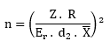 Onde: n – número de ciclos a serem cronometrados, Z- coeficiente da distribuição normal padrão para uma certa probabilidade, R- amplitude da amostra, d2– coeficiente em função do número das cronometragens preliminares, X- média da amostra, Er– erro relativo assumido.