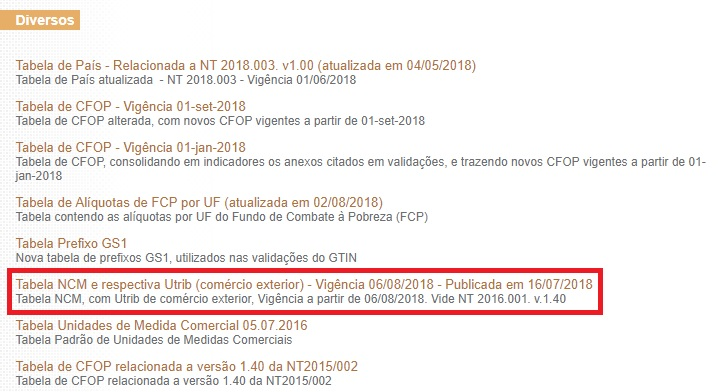 No portal da NF-e também é possível fazer o download da tabela de NCMs através do site: