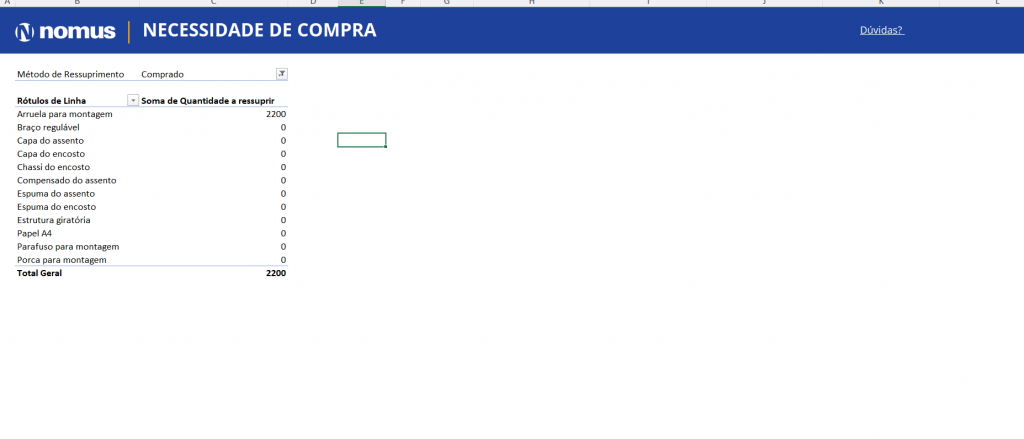 6. Da posição do estoque, vamos para outro relatório, o da aba de necessidade de compra. Ele mostra o que precisa ser adquirido pelo comercial: