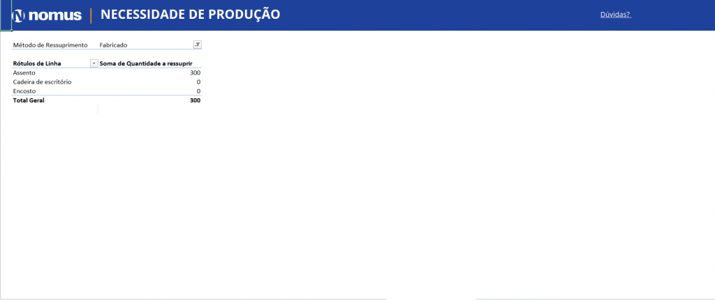7. Então, vamos para a aba de necessidade de produção, que mostra o que precisa ser fabricado para suprir o estoque: