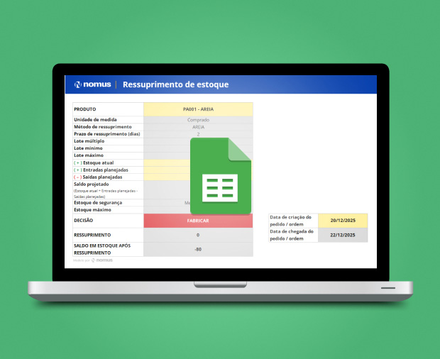 Planilha gratuita de ressuprimento de estoque para indústrias, baixe agora mesmo: