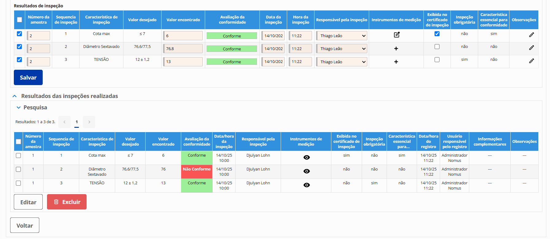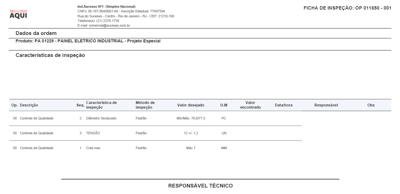Registre os resultados de inspeção dos parâmetros importantes para o monitoramento dos processos produtivos como velocidade, temperatura, amperagem, entre outras. Um processo produtivo bem monitorado contribui para a qualidade na fabricação de seus produtos.