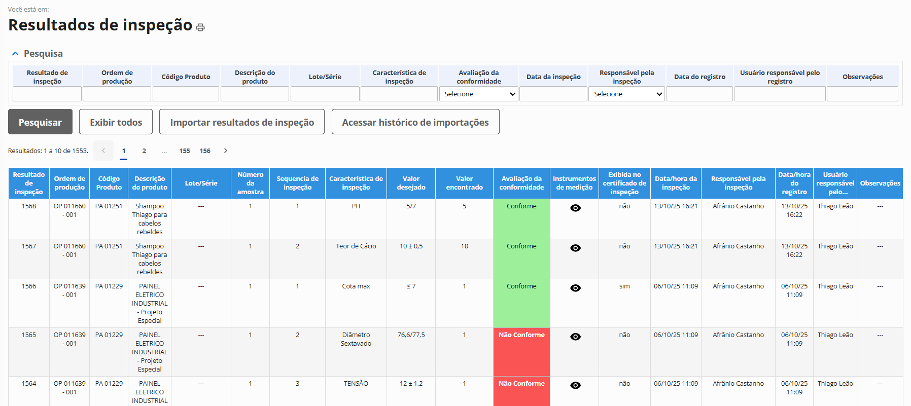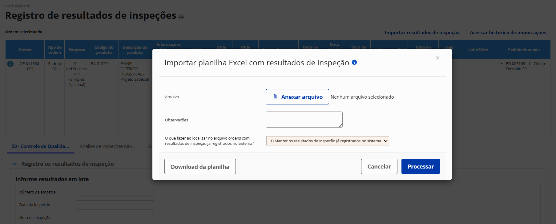 Registre os resultados de inspeção de suas ordens de produção garantindo a qualidade de todos os produtos fabricados.