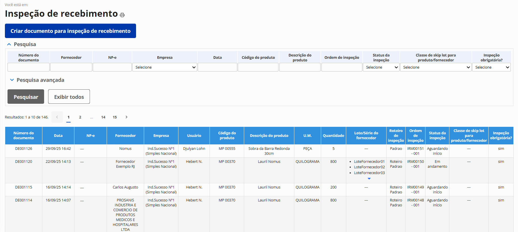 Registre os resultados de inspeção de recebimento garantindo a qualidade das matérias primas compradas por sua indústria e qualificando fornecedores.