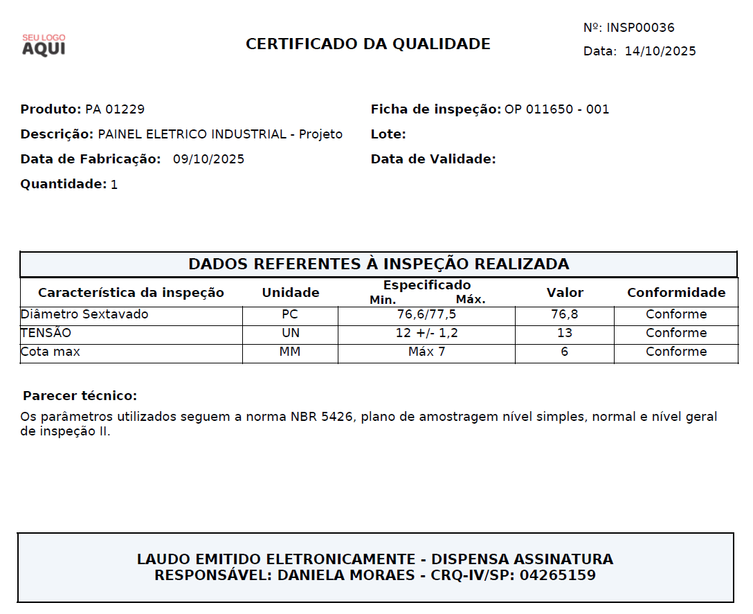 Gere certificados de inspeção com layout personalizado para os produtos fabricados na sua indústria, envie estes certificados por email para seus clientes.