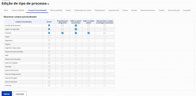 Definição de campos personalizados por processo