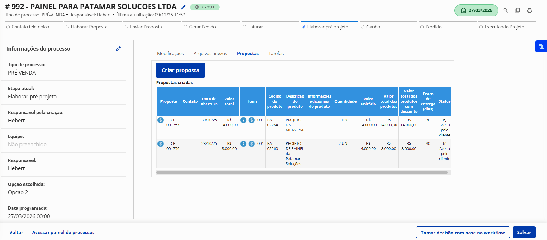 Registre seus processos de negócio como Negociação de venda, Suporte ao cliente e Assistência técnica, e defina responsáveis para cada processo.
