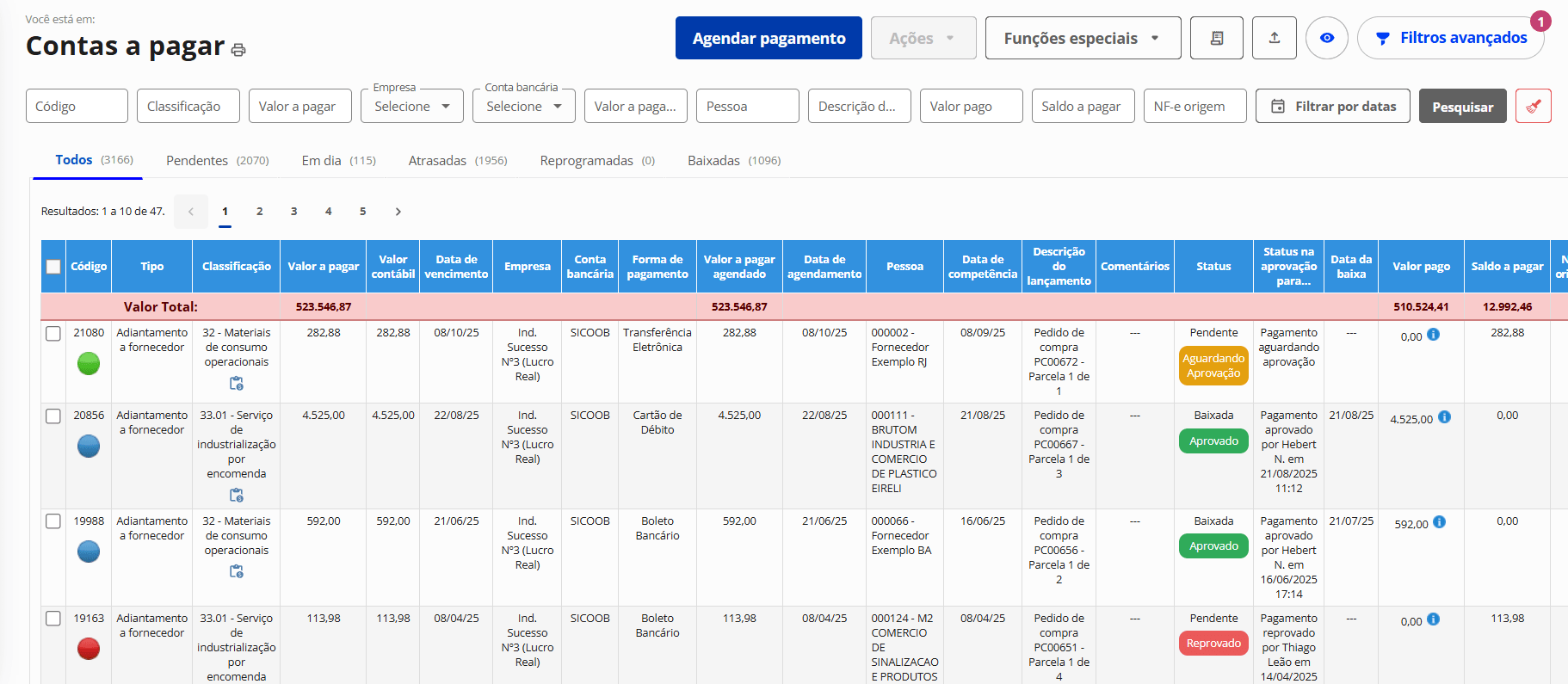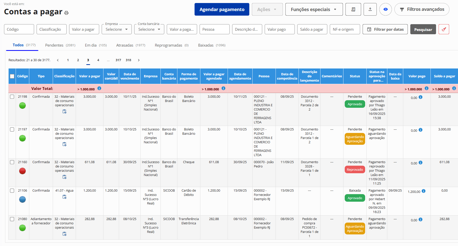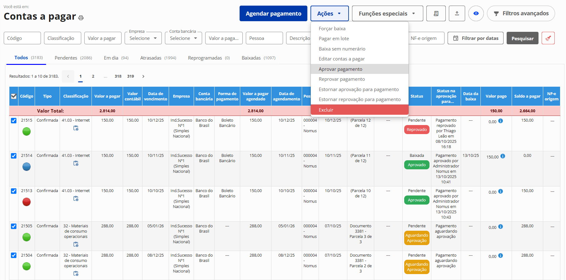 Aprovação de contas a pagar