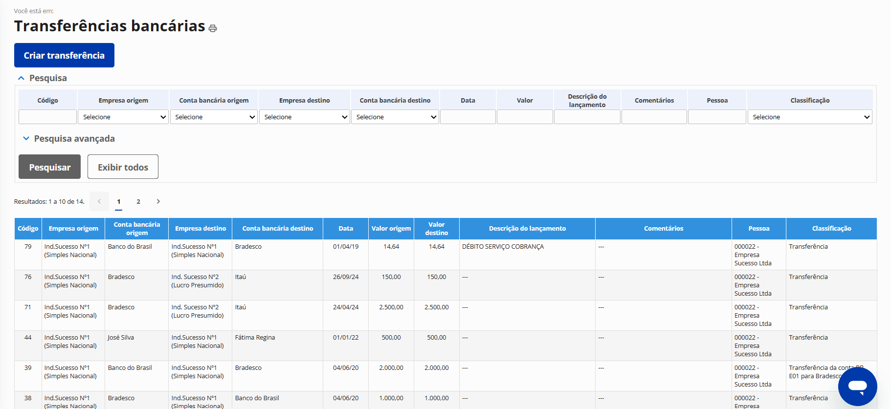 Transferências bancárias