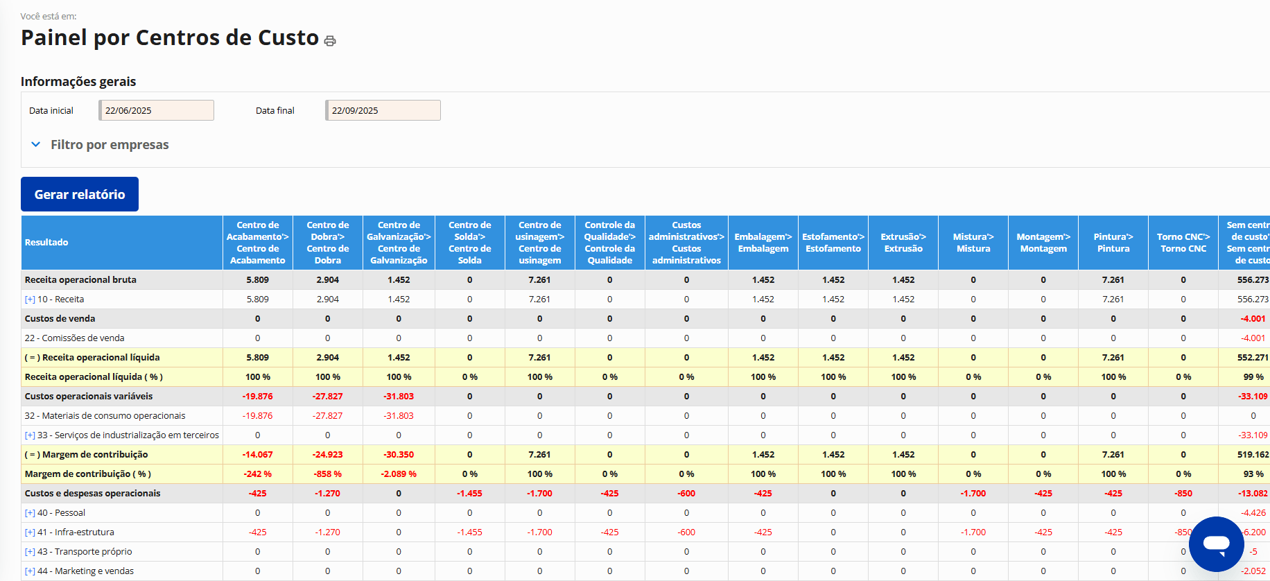 Gestão por centros de custo