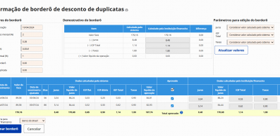 Gestão do processo de descontos de duplicatas com seleção de contas a receber que serão descontadas, geração de borderô para descontos de duplicatas e registro do retorno de descontos de duplicatas com liquidação ou recompra do título.