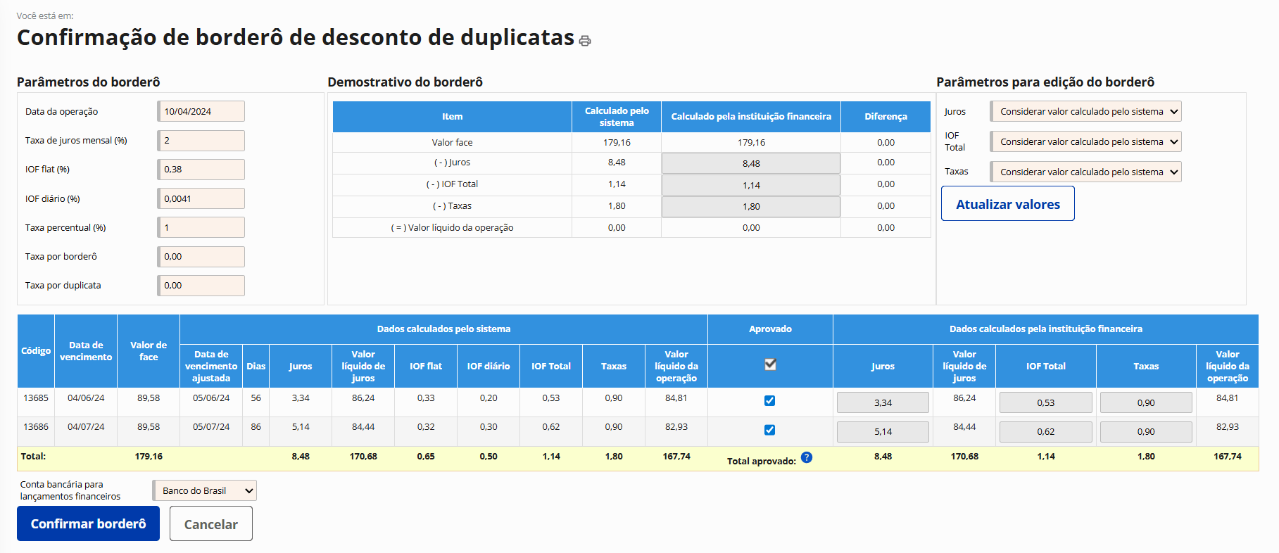 Controle de desconto de duplicatas