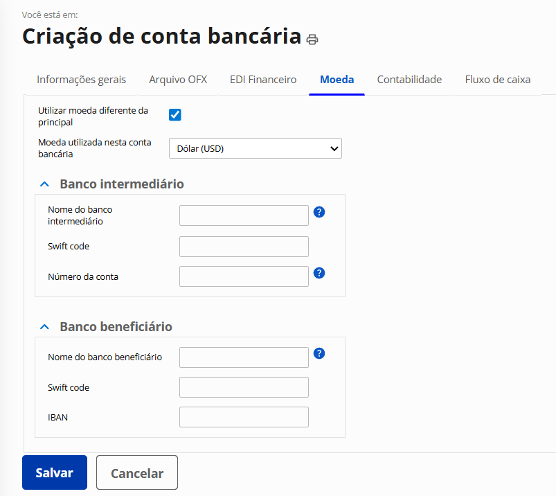 Possibilidade de registrar vendas, compras e gerenciar contas a receber e pagar em moeda estrangeira