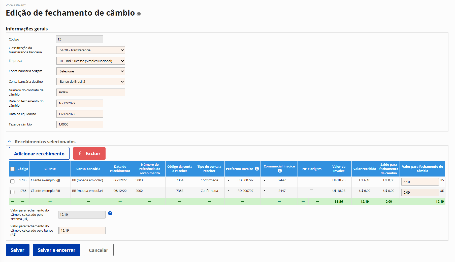 Fechamento de câmbio para transformar valores em moeda estrangeira em valores em moeda nacional.