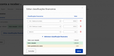 Possibilidade de informar mais de uma classificação financeira nos processos de vendas, compras e nas contas a receber e pagar