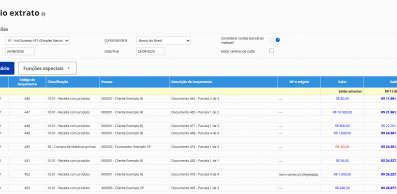 Extrato com todas as transações financeiras das contas bancárias para apoiar o processo de conciliação bancária.