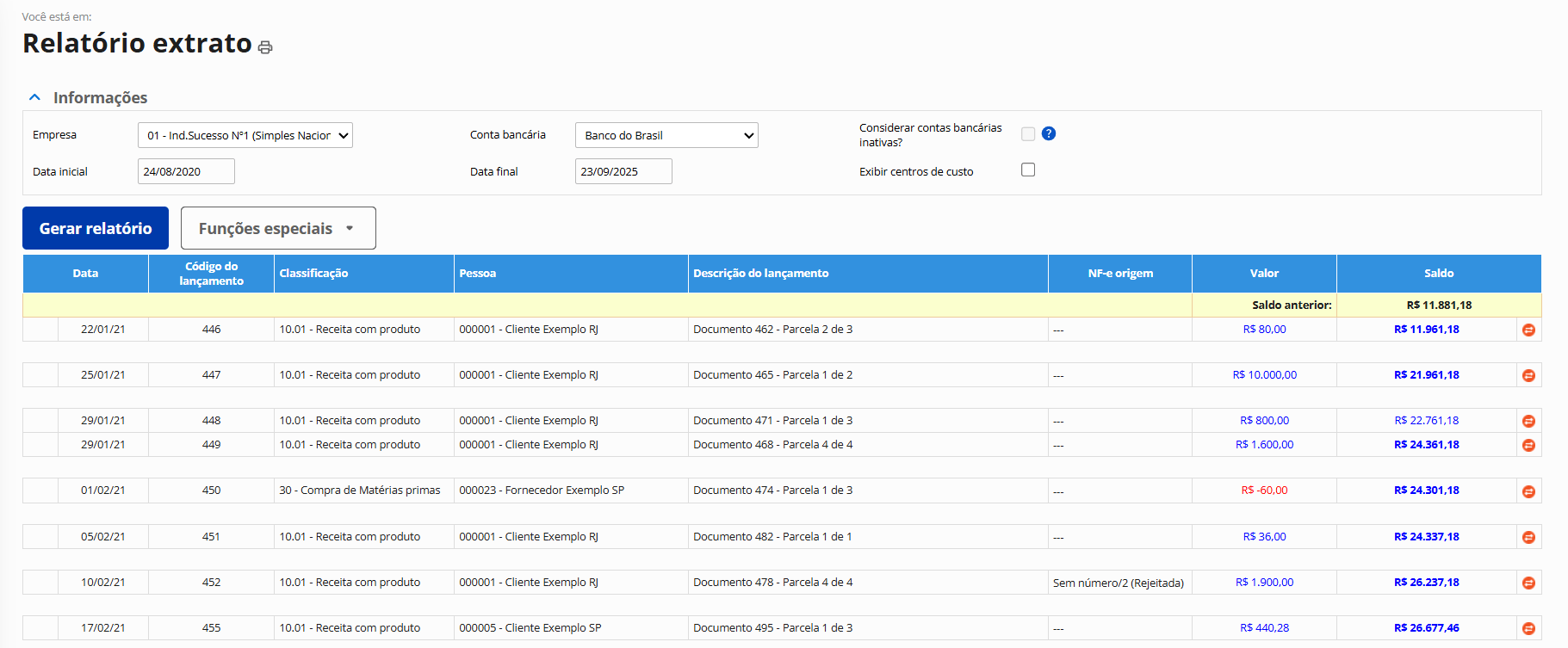 Relatório de extrato