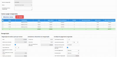 Possibilidade de renegociação de contas a receber e a pagar com aplicação de multas, juros e desconto e total rastreabilidade das contas renegociadas no financeiro.