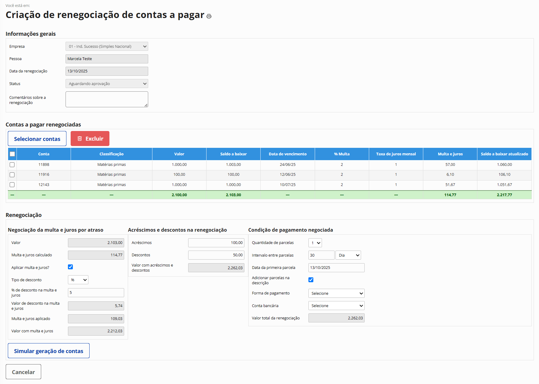 Renegociações de contas a receber e a pagar