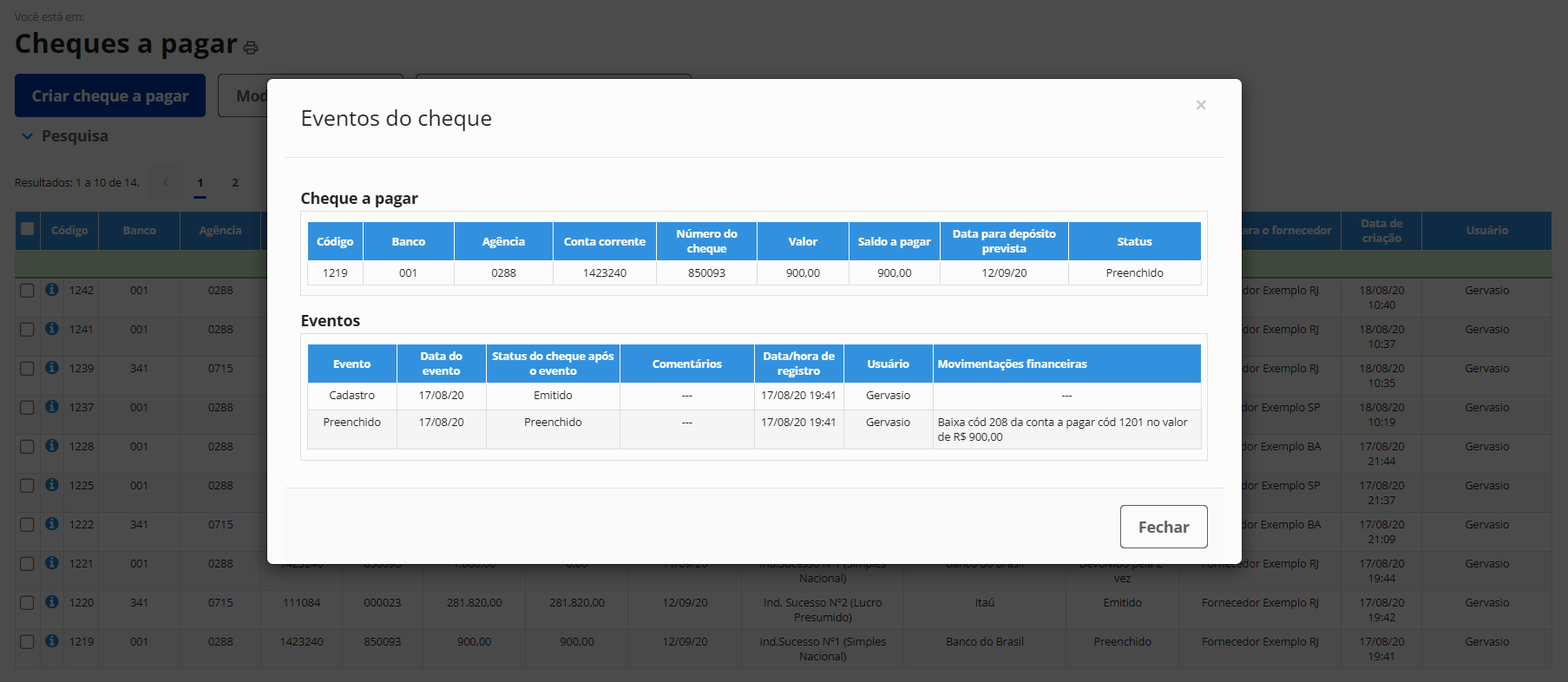 Gestão de cheques a pagar