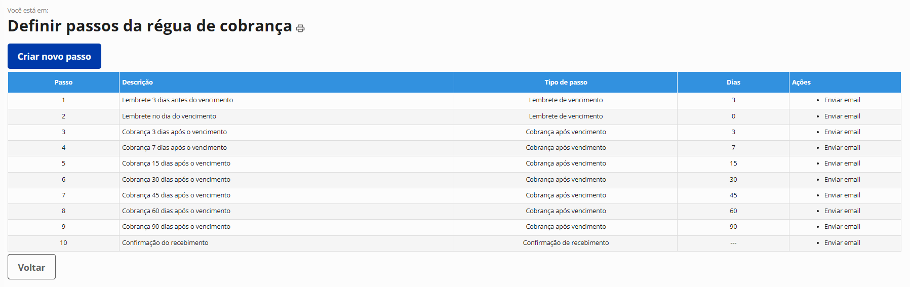 Cobrança automática de contas a receber com a criação de uma régua de cobrança personalizada e envio de emails de forma automática com lembretes de vencimento, cobrança após vencimento e confirmação de recebimento.