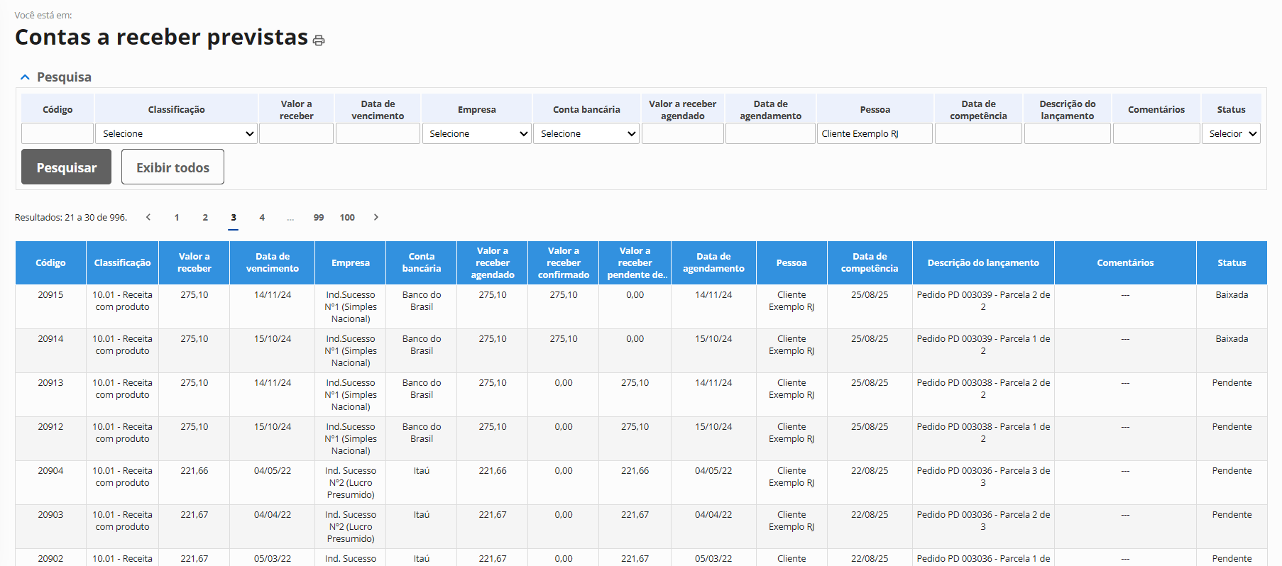Possibilidade de geração de contas a receber e a pagar previstas para pedidos de venda/compras garantindo mais precisão na projeção do fluxo de caixa da empresa.