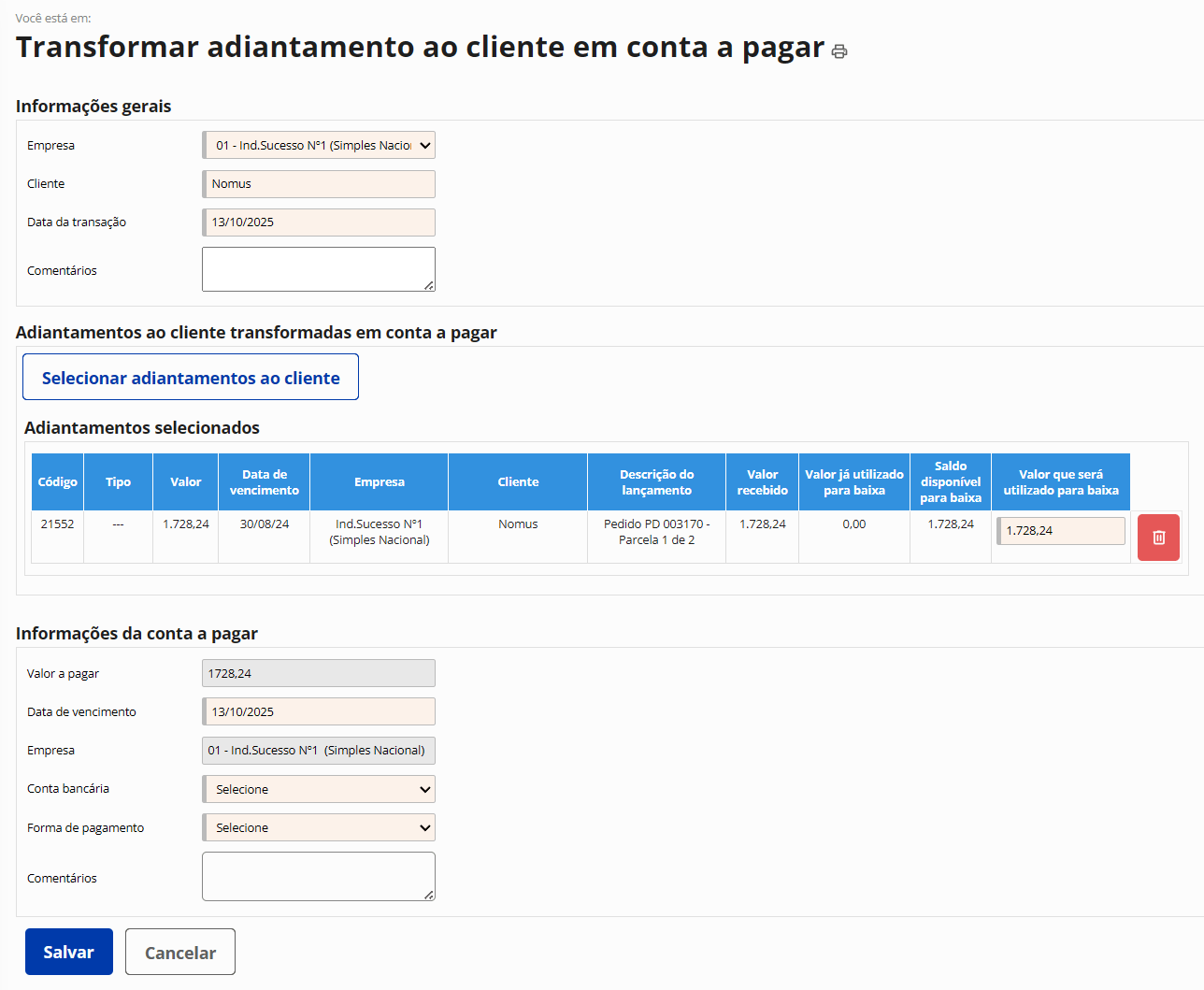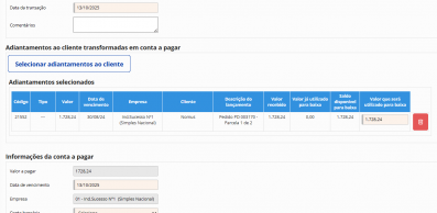 Gestão de adiantamentos de clientes
