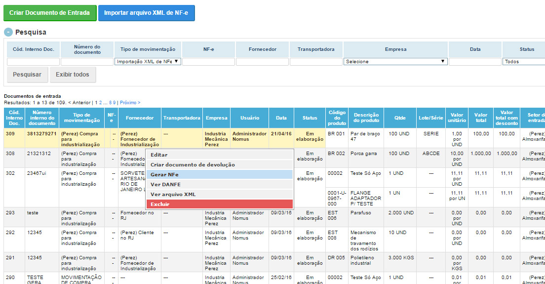 Nomus ERP Industrial » Como funciona o Nomus ERP Industrial » Importação de produtos » 7-gerar-nfe