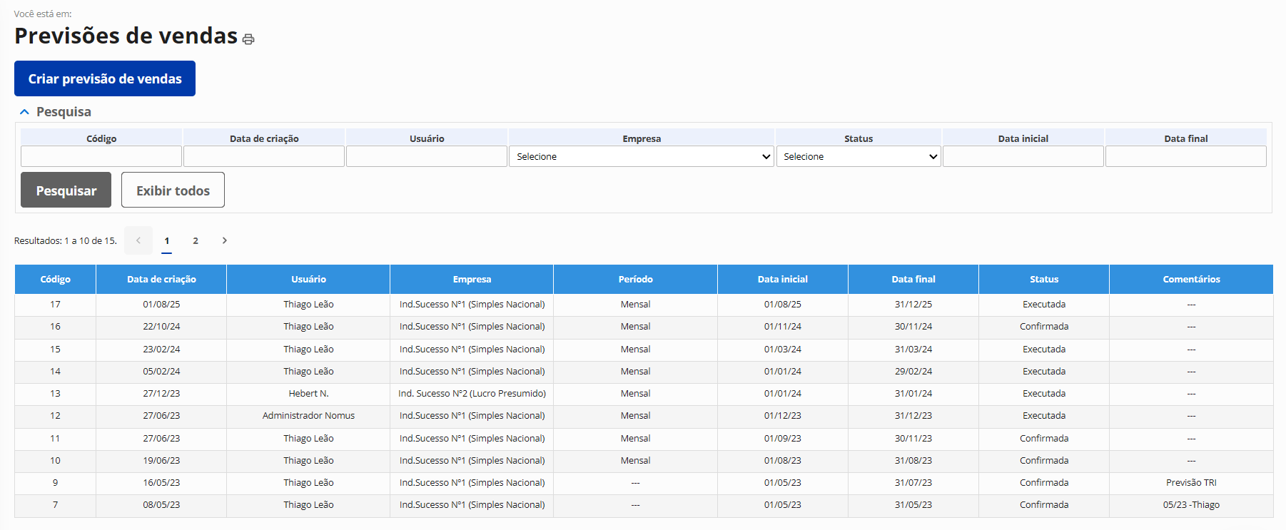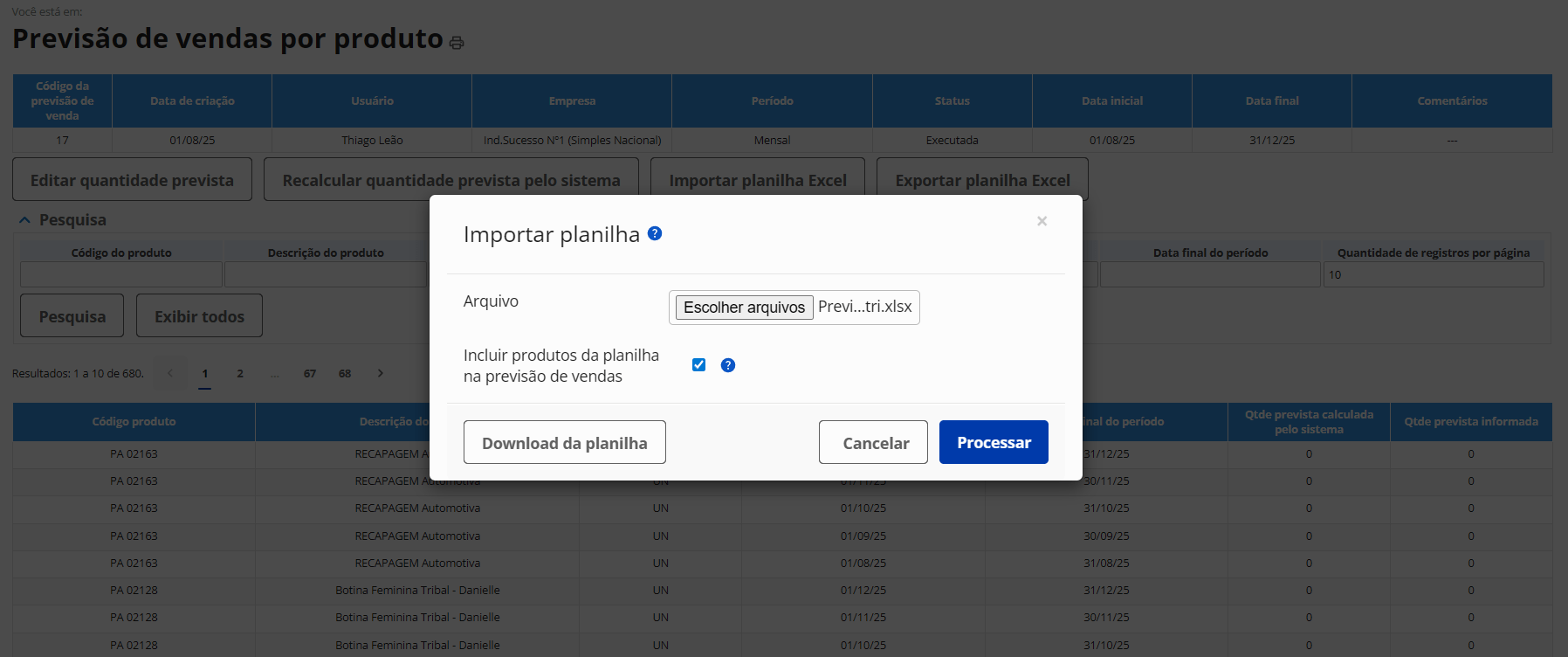 Cálculo da previsão de vendas dos produtos a partir da análise histórica dos pedidos de venda.